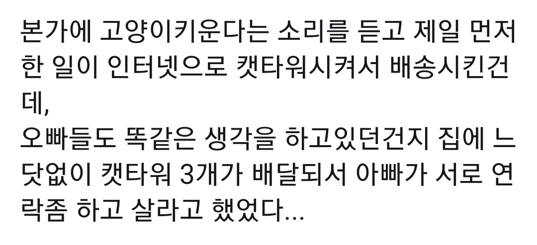 건강체력어디 캣타워 없이 살았나...하겠네 택배기사가.