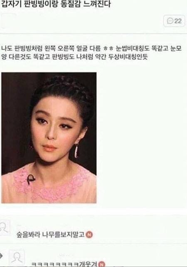 정치충디져부러@수신제가치국 판빙빙 성형전이나 쳐봐