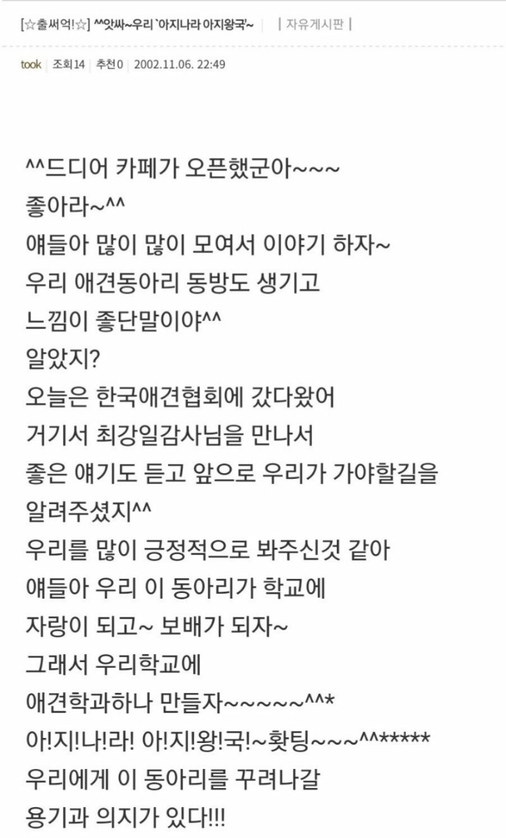 내가좋아요하면최고인고딩때 쓴 글이 요즘 아재들 채팅체얔ㅋㅋㅋㅋㅋ 변한게 하나도 없는 분이네ㅋㅋㅋㅋㅋ