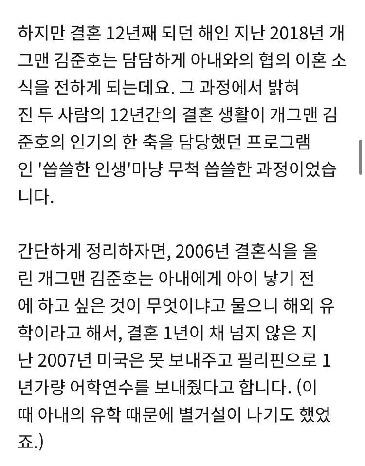 재미있는세상둘사이 감정이나 이런거 모르니까 ... 쉽게 여자 욕하는데 남녀 사이 모르는거임 김준호도 감정이나 이유가 있으니 12년을 돈대주며 참지 않았을까? 그래도 3자가 보기에 여자가 이기적으로 보이는건 사실 일단 신혼초에 별이유도 없이 어학연수 가는거 부터가 .... 참그래 ;;
