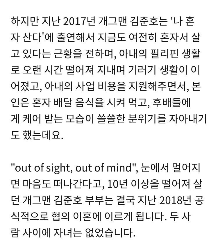결혼생활 12년 중 11년을 혼자 살다 이혼한 개그맨