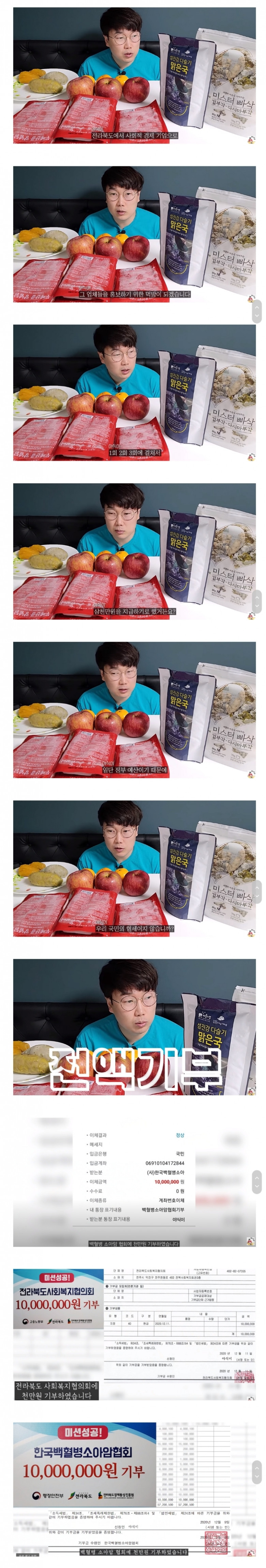 세상의밖야식이 저분은 평소에도 기부 많이 하던데