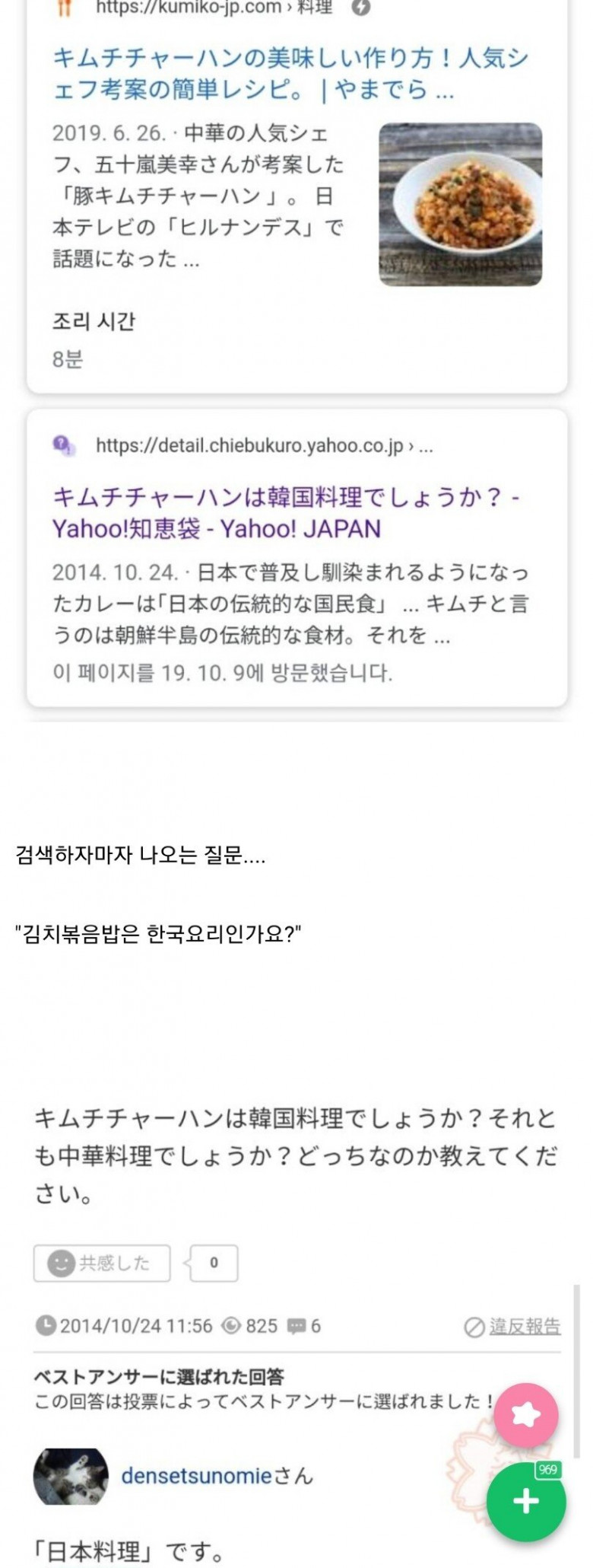 whwQna@다가나바 그러니까 저 사진에 나온 일본인 입장에서 김치=한식이고 기무치차앙은 어레인지된 일식이다. 이런식으로 말하는데 작성자는 저걸보고 "일본얘들이 김치볶음밥=일식이라고 했다 ㅋㅋ"라는식으로 날조를 했잖아요.