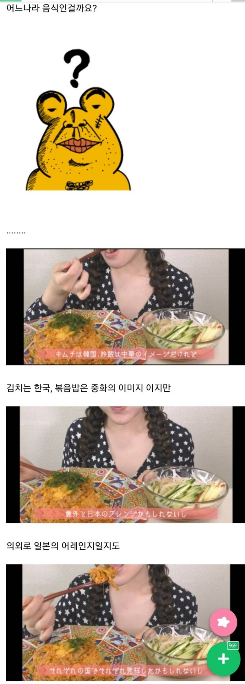 뿜뿜마왕김치는 우리 생각보다 훨씬 일찍 일본에 진출한 음식임. 일본 시골 동네 식당가도 김치 들어간 볶음밥 비스무리한 음식 꽤 많음. 일본 여기저기서 여러번 먹어봄. 이미 김치는 일본에 현지화된 음식임. 열폭할 문제가 아니리 저렇게 생각해도 이상하지 않을 음식이라고 생각하면 되는거임.