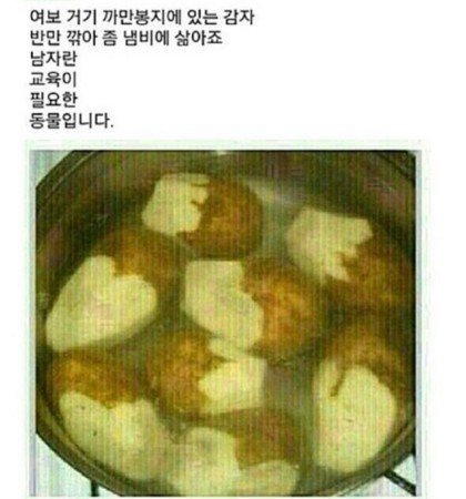 酒여지난밤내뿜댓글달여기 사진속 상황 만든사람들 모두 처음부터 다시 배우자. 할 수 있어. 똥손도 밥은 먹고 살아야 할거아냐~ 밥솥을 사면 기본적으로 계량컵이 있지? 버려~ 니들은 그냥 종이컵으로 해. 종이컵 두 컵이면 공기밥 2개 나와. 그럼 물 맞추는게 문제잖아. 쌀과 물은 1:1 로 가~ 절대 묻고 따불로 가지마~ 죽밥된다. 그리고 계란후라이. 기름을 조금 두르고 키친타올로 살짝 닦아내. 기름튀면 초보들은 힘들잖아. 계란을 조심히 깨고 소금간을 해~그런다음 후라이팬 뚜껑을 덮을건데~ 이때 물을 조금붓고 잽싸게 닫아서 중불에 익혀