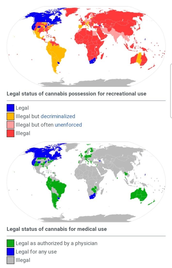 인간리트리버@SJJEON 전면합법은 아니라도 상당수 맞아요....... 올해 제가 사는 나라에서 대마초 합법화하는 국민투표했는데 저는 어린 아이들을 키우다보니 식견을 넓히고자 일단 제가 먼저 이것에 대해 공부해봤습니다.사이코엑티브한(향정신성) 성분이라고 무조건 중독/환각을 일으키는것이 아니란것을 알게되었고 역사타임라인과 각종 포럼등을 무차별적으로 읽다보니 제 좁은 견해로는 노예와 군인, 일꾼들에게 금지가 된것이 경우가 많았고 제가 내린 결론은 알콜과 비교해봤을때 여러점에서 오히려 너 낫다 라는 평가를 내렸습니다. 지극히 개인적인 평가로요.