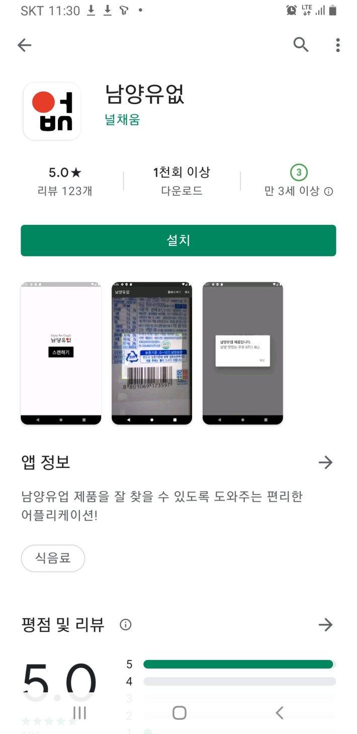 iijijijjii플레이 다운로드에서 남양유없 을 검색해서 다운받아. 남양의 손길이 닿은 상품을 알 수 있지.