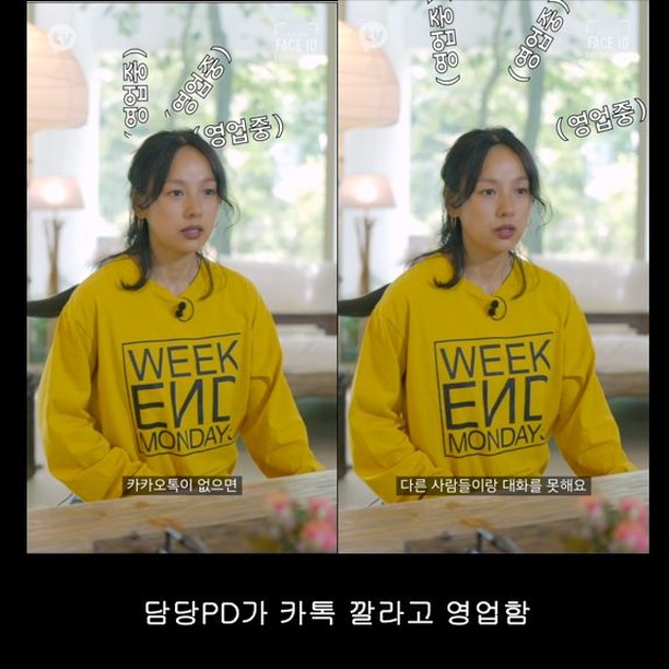 요미사세요~효리 카톡했음 한번도 안하기는 ㅋㅋ효리는 다좋은데 은근 자기는 일반인과는 다르다는늬앙스 행동 많이해서 좀 그럼