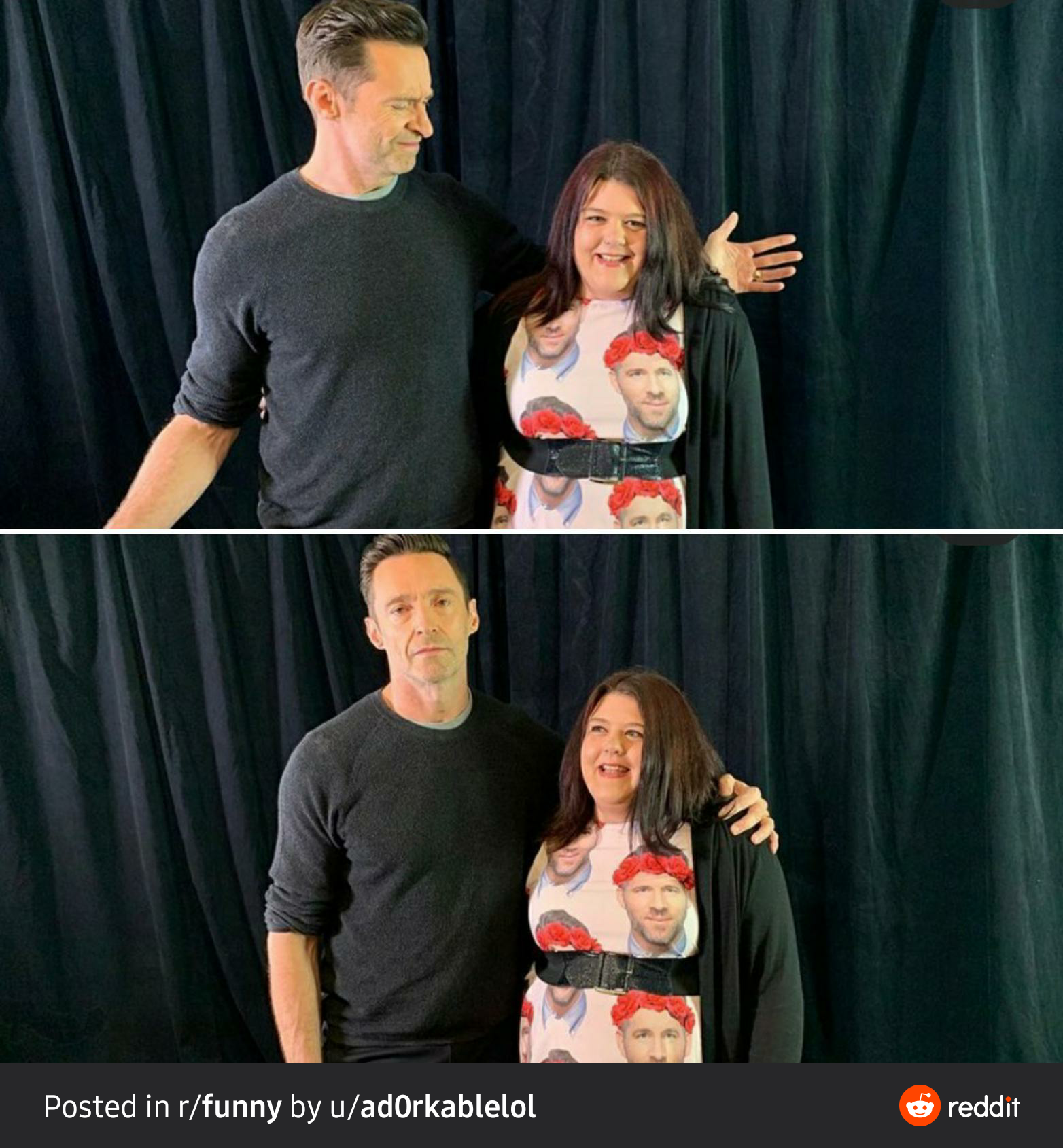 ㅅㄴㄱㅅㄷㅅㄷㄱㆍ라이언 레이놀즈가 휴잭맨이랑 친해서 둘이서 소셜미디어로 장난치는 모습도 많이보여주고 이사진도 약간의 밈같은 분위기 같음