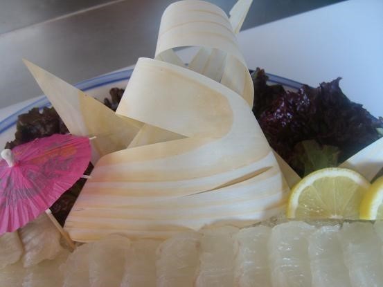 스르륵~~@이묘뷰 회 밑에 깔아 회를 돋보이게 하는건 천사채입니다.