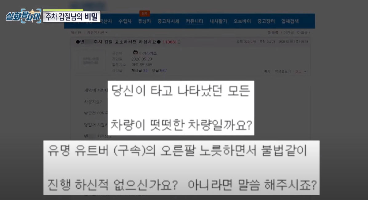 근데 치킨맨은 그 벤츠를 타고 다님 그리고 이 차 또한 주차 갑질 문제되는 차였음