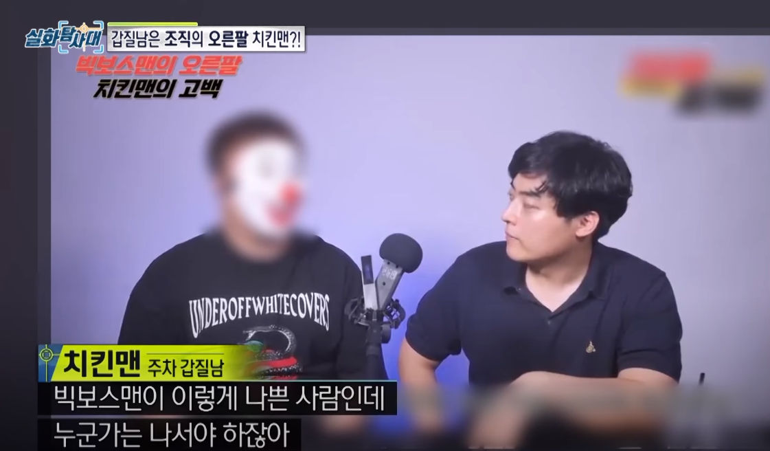 빅보스맨은 범죄집단의 대가리고 치킨맨(주차갑질남)은 오른팔 격임