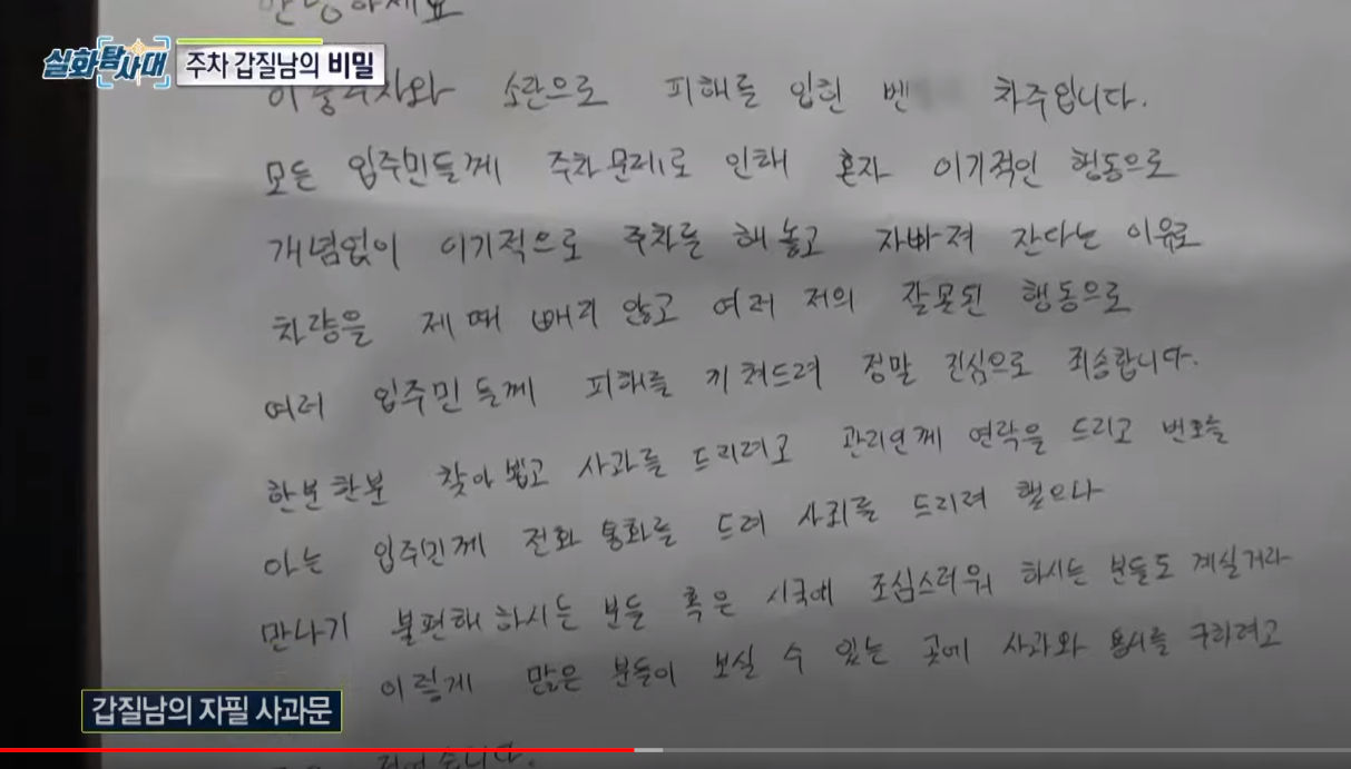아무튼 주차 갑질남은 자기 스스로를 되돌아보고 반성을 한다고 함