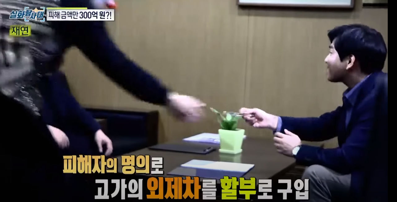 그렇게 사기친 금액은 캐피탈 업체와 빅보스맨이 가져가고 피해자는 그 돈을 갚고있는 상황이 됨