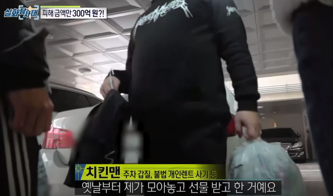 이어서 제작진은 아카라카초님을 통해서 치킨맨(주차갑질남)한테 당한 피해자를 만나게 됨