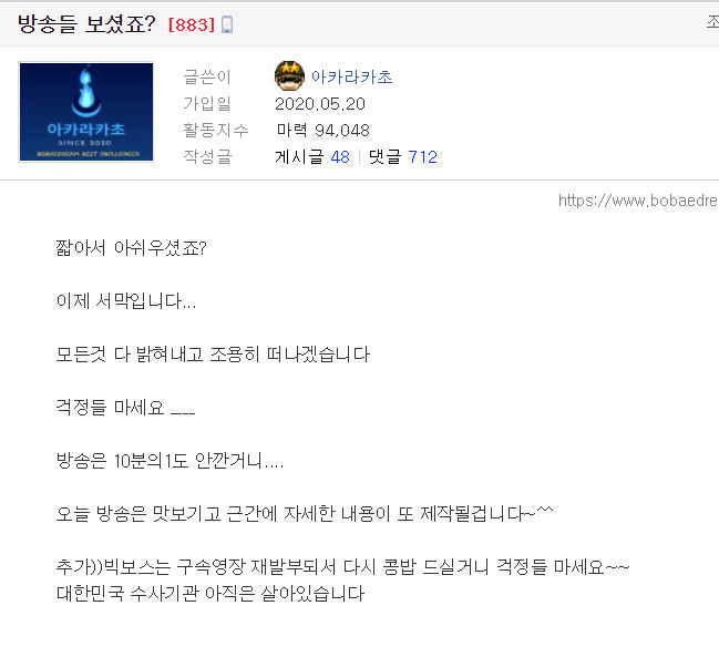 아까 말한 보배드림의 아카라카초님이 실화탐사대 얘기는 10분의 1도 안된다고 함