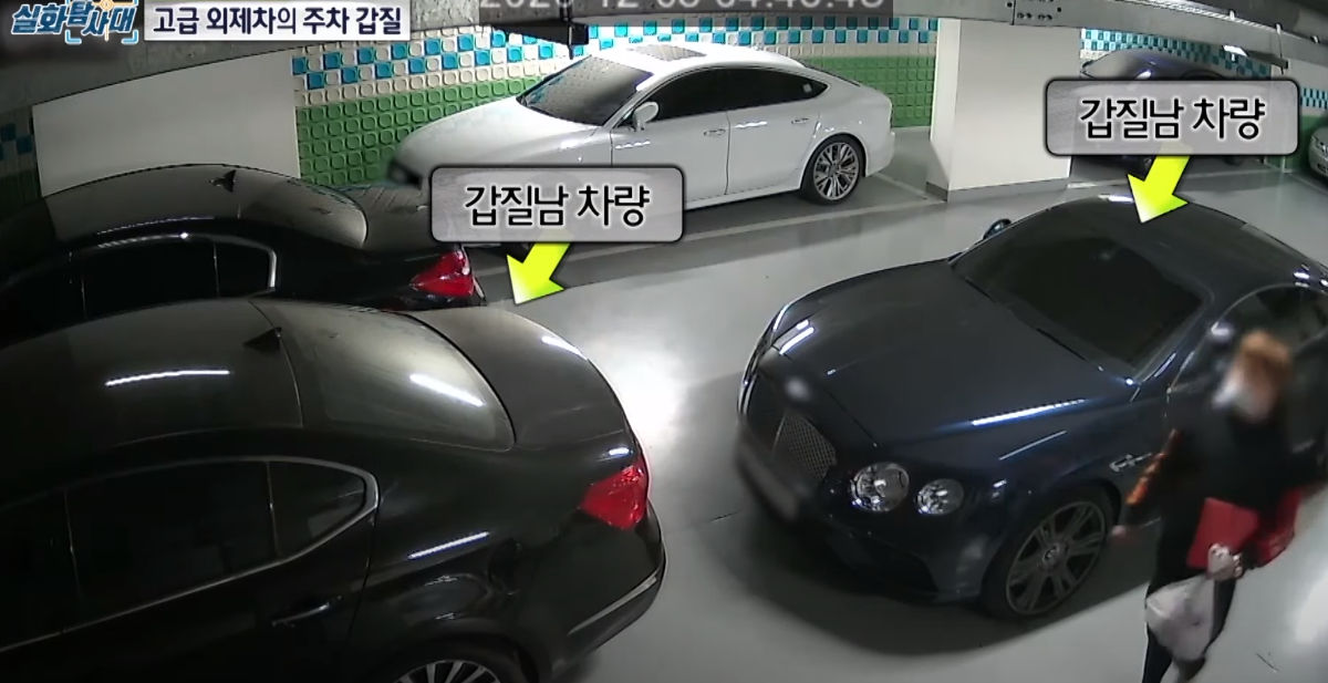 오른쪽에 보이는 벤틀리가 문제되는 주차 갑질남의 차량인데