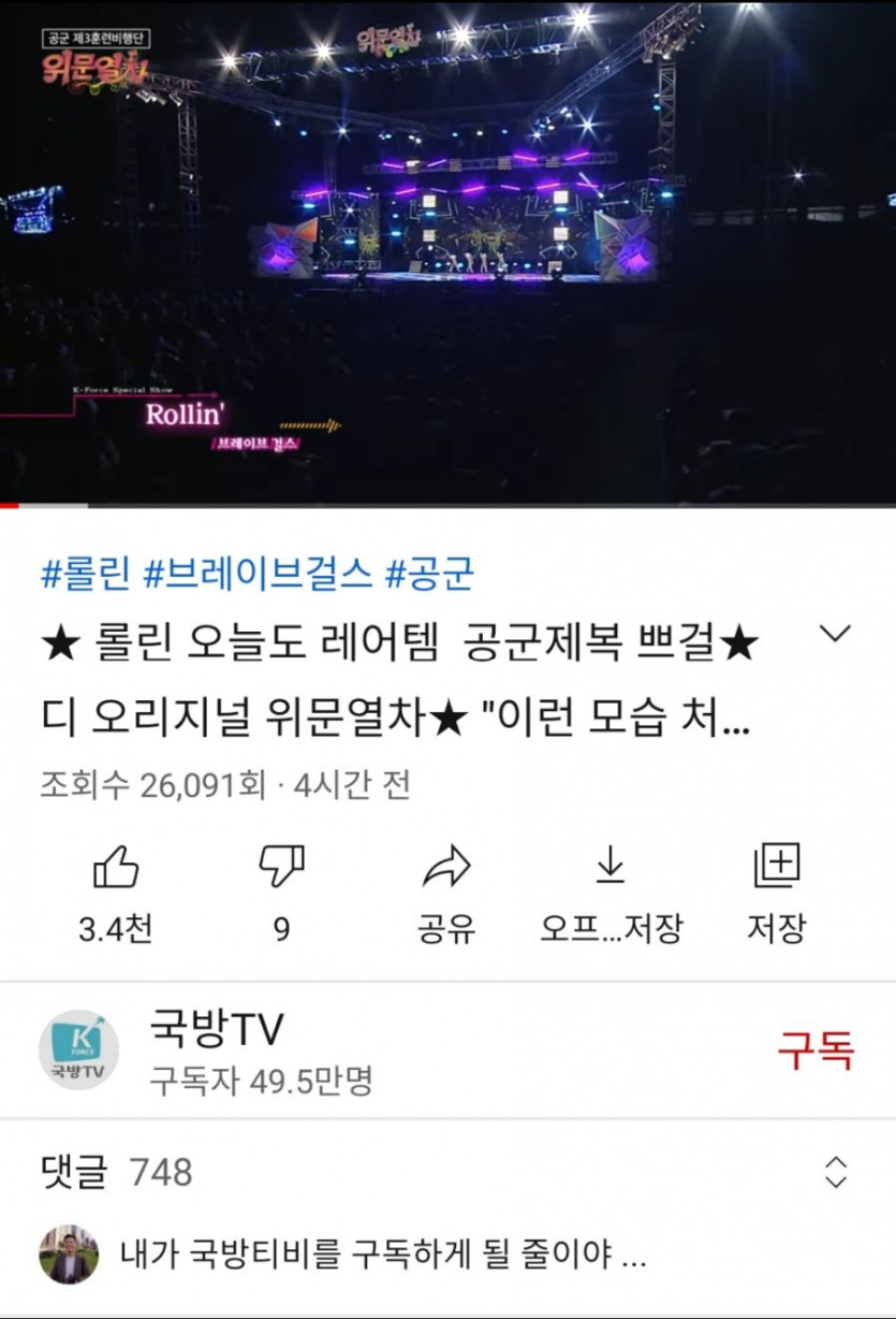 루루루룻요즘 국방tv보면 브걸의 롤린영상도 많지만 하이힐도 많이 나와. 담당자가 하이힐을 더 좋아하는 듯.