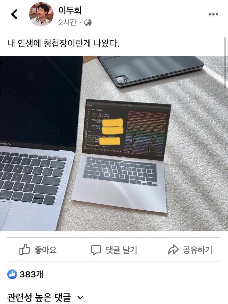 서울대 컴퓨터공학부 학사 석사 출신의 청첩장