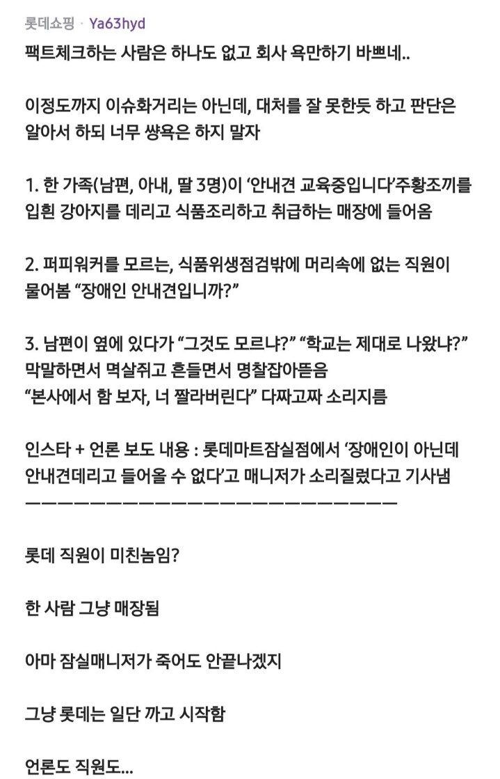 1. 롯데계열사 직원이 안내견측에서 선시비 걸었다 선동함