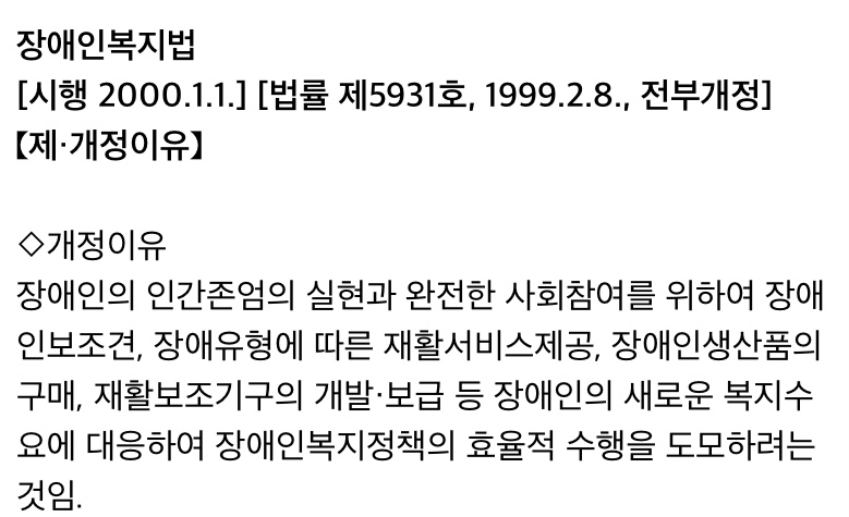 애초에 법률명부터가 장애인복지법인데 장애인들을 위한 법에 대고
