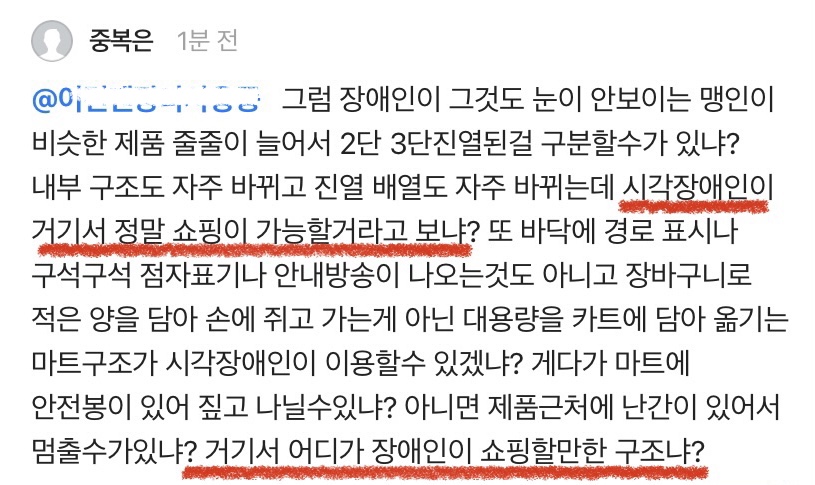 ㄴ 대형마트는 장애인이 이용할 만한 시설이 아니라고?