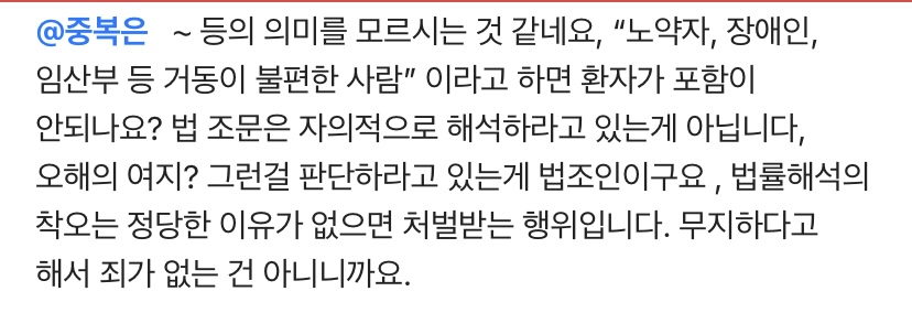 쟤 논리는 예를 들어 교통약자에 장애인,노약자,임산부 등