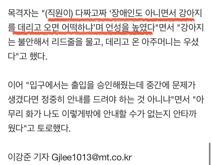1. 고객들이 항의한다, 장애인도 아닌데 개를 데리고 오면 어쩌냐?