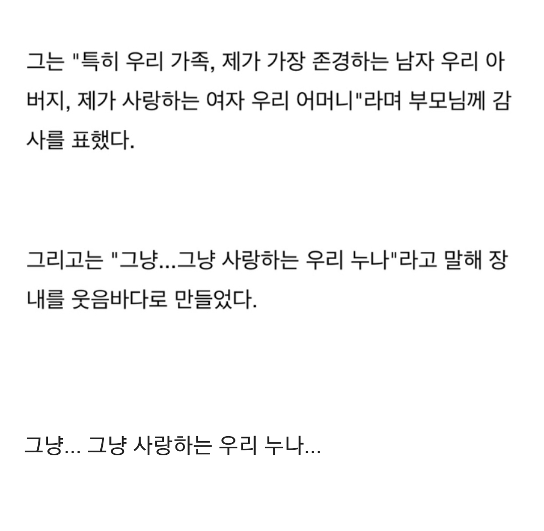 또로롱o오빠랑 나이차가 있어서 그런가..밖에서 보면 먼저 달려가서 오빠~~이랬는데ㅎㅎ 워낙 성격이 둥글둥글해서 학교에서 간식나오면 동생들 준다고 손에 쥐고 먹지도 않았다는데.. 오빠, 하늘나라에선 잘 지내누.?보고싶은데 꿈에라도 좀 찾아와주라~~