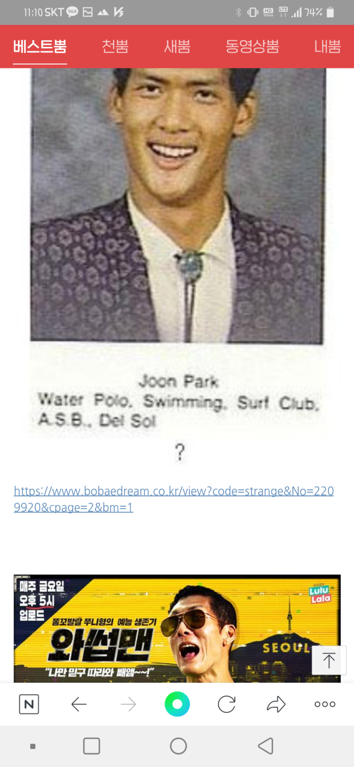 ㅅㅈㄱㄴㅅㄹ교포들보면 살아남는 방법이 두가지인듯.. 1.착하고 바른 인싸(에릭남) 2.겁나 강하고 몸좋은 바닷사람 갬성 핵인싸 (와썹맨)