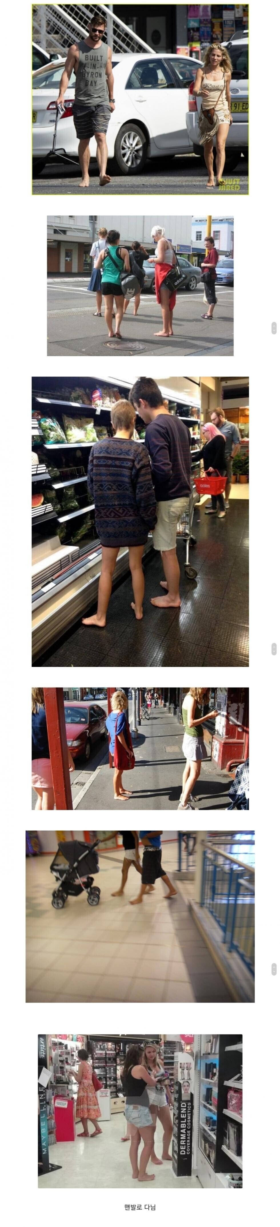 미란다심슨골드코스트에 1년정도 있었는데 저런 사람들 제법 있더라구요.확실한건 어딜가나 바닥이 정말 깨끗해서 신발 없이 다녀도 괜찮을정도
