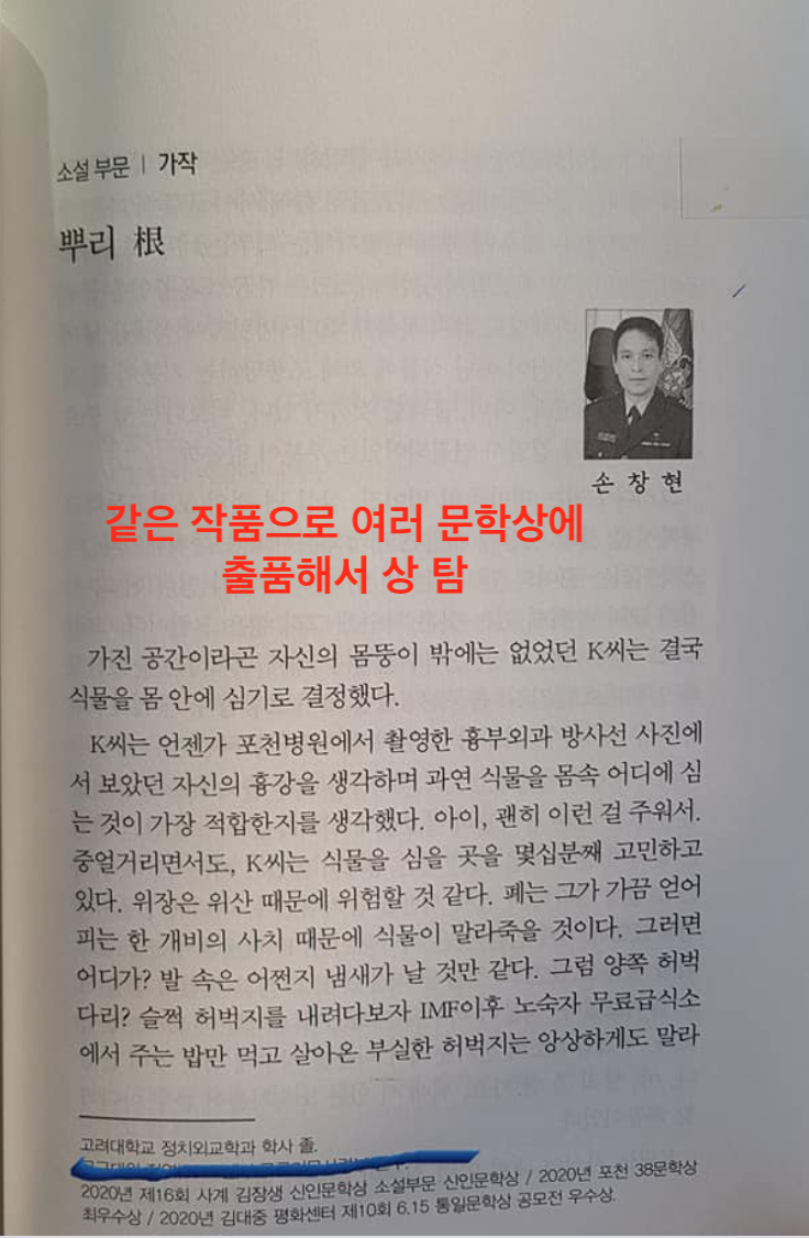 6. 다수의 문학상에서 김민정 작가님의 [뿌리]를 도용해서 수상을 함