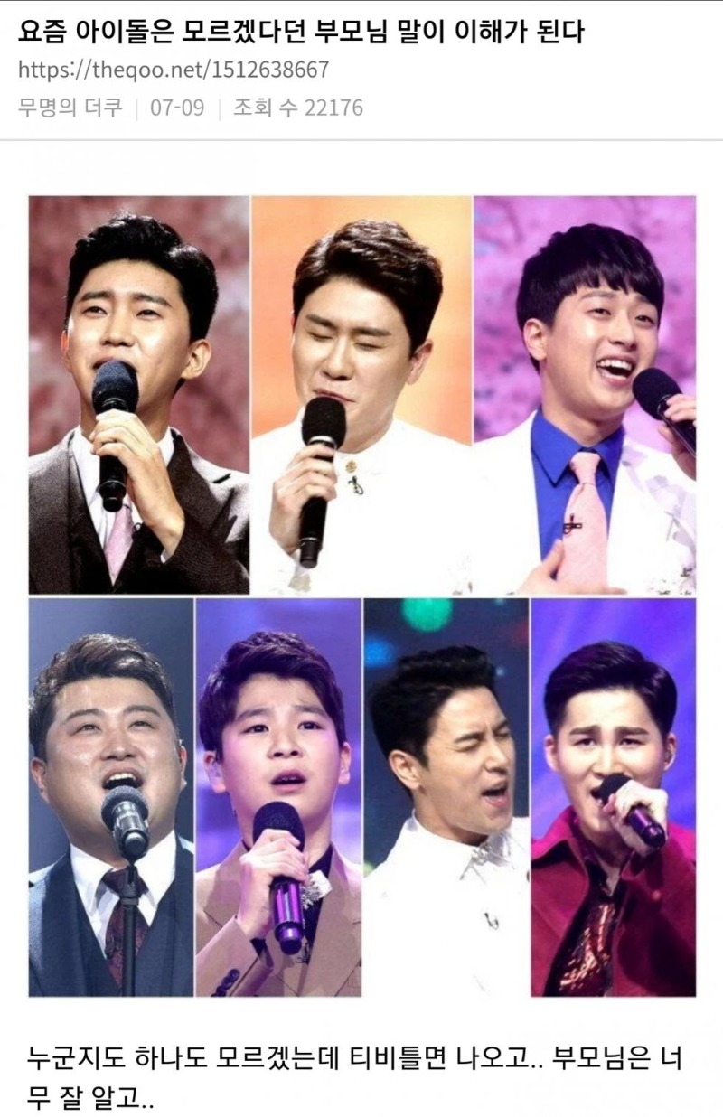 안해......나 트로트 안좋아하는데..어째서 아이돌은 모르겠고 재들은 이름까지 다 알지???