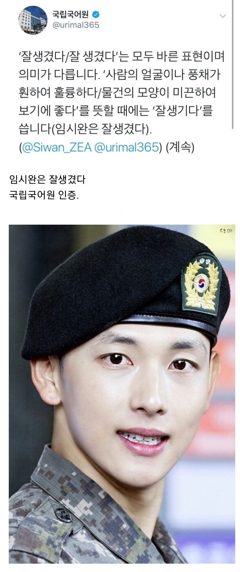 한화가을야구언제또해국어원 담당자가 임시완 팬인듯. 아! 임시완이 잘생기지 않았단건 아님요.ㅋ