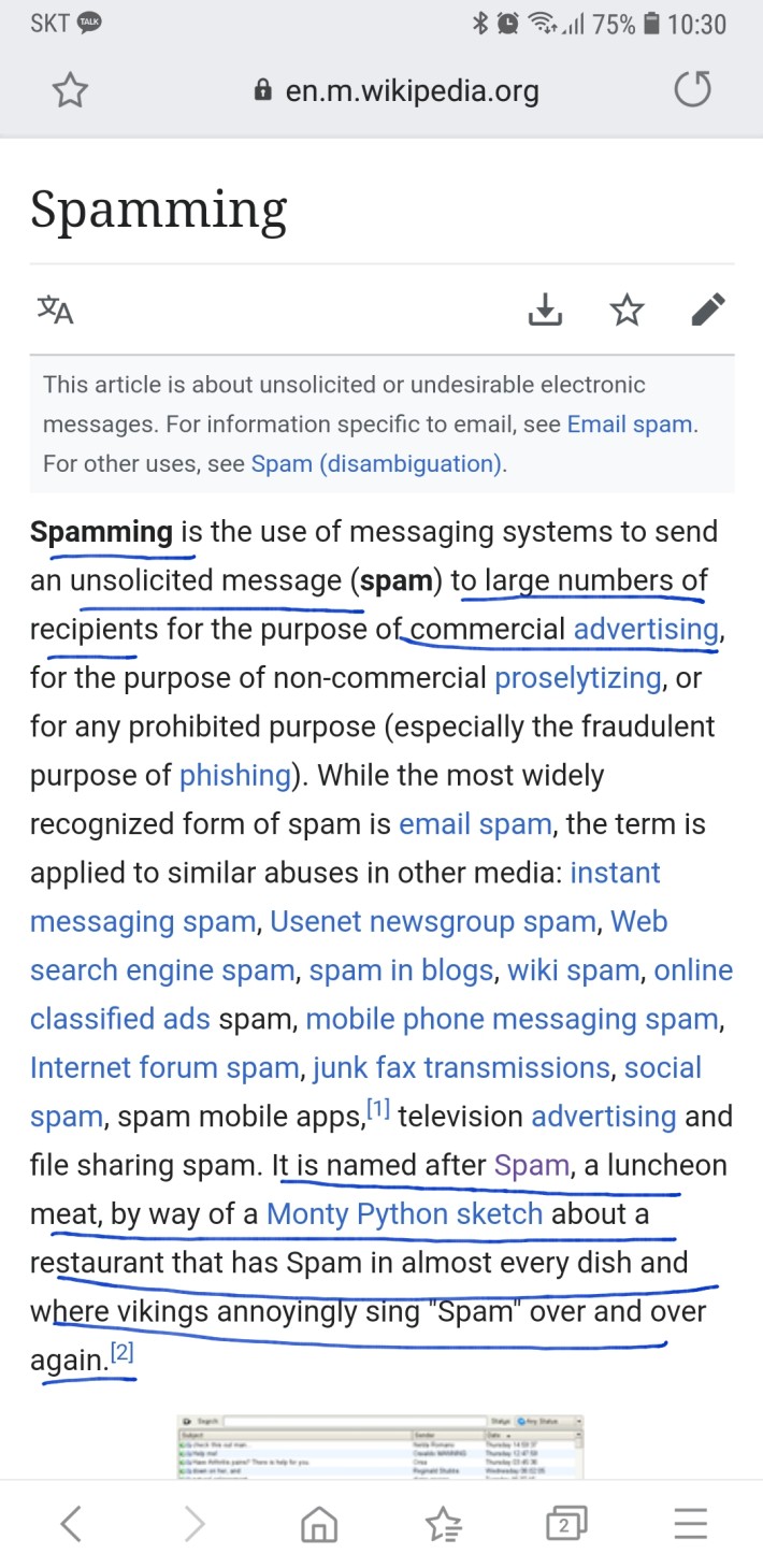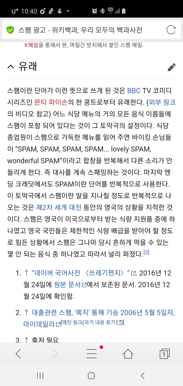 SCHIZ0@비린내나는과메기싫어 출처는 위키백과의 스팸 광고의 유래입니다