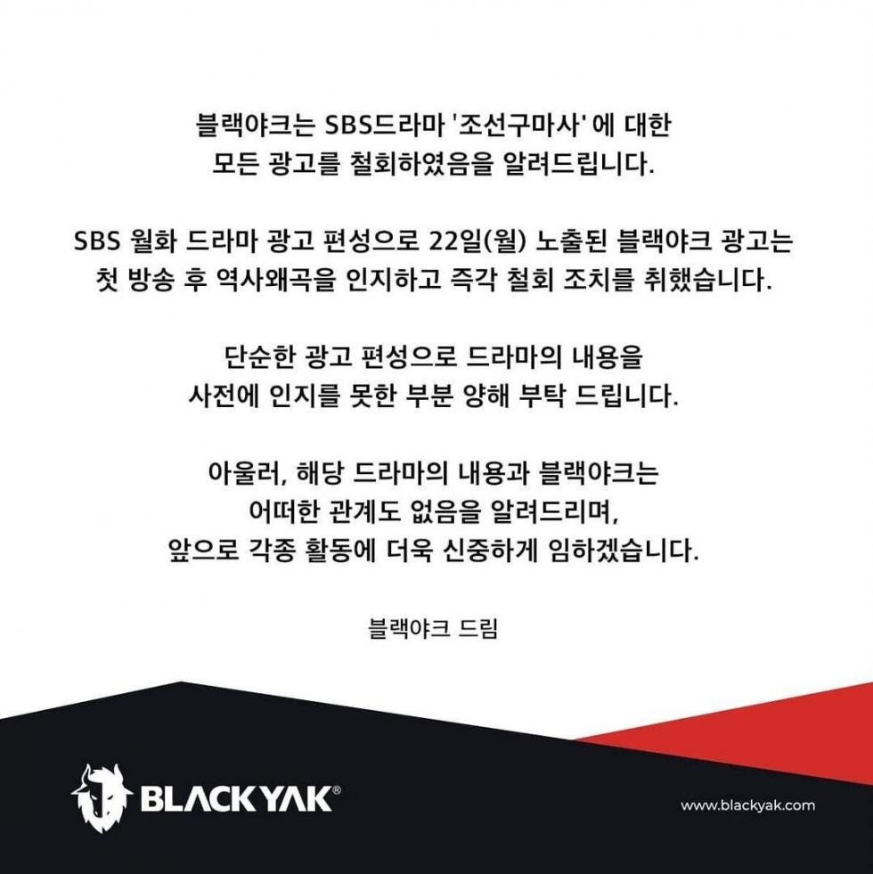 조선구마사 손절한 블랙야크