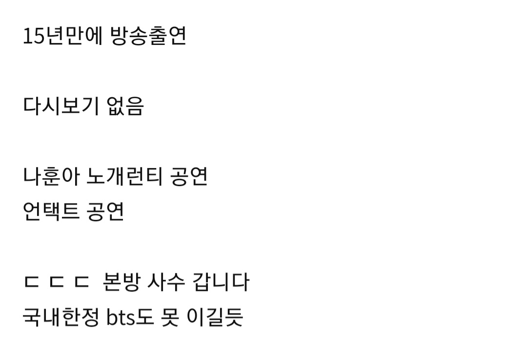 술푸자근데 콘서트 가본 사람들은 콘서트로 보던 감흥이 티비로도 느껴질란가