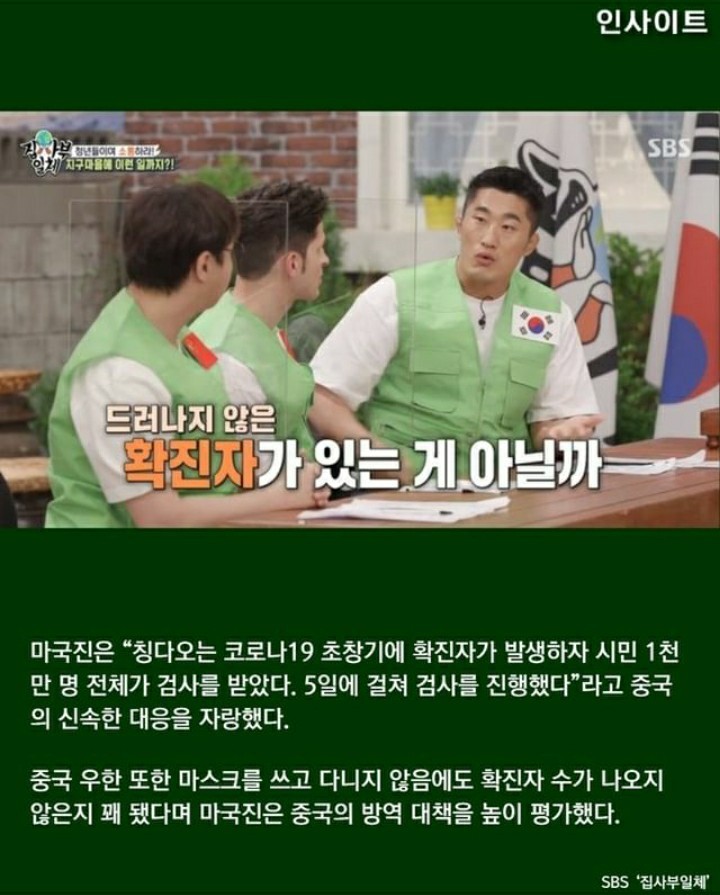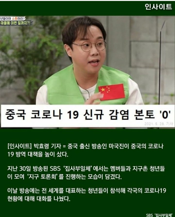 식영님이 좋아나도 집사부 보면서 저 짱꼴라는 무엇인가 했다. 그리고 다른 외국인 패널들이 확실히 코로나는 니(착중죽중)네꺼라 왜 말 못하고 불편해 하고 있는지 짜증이 나서 채널 돌렸다. 옛날 비정상회담에 나온 장위안이 생각나서 뭐하고 지내는지.
