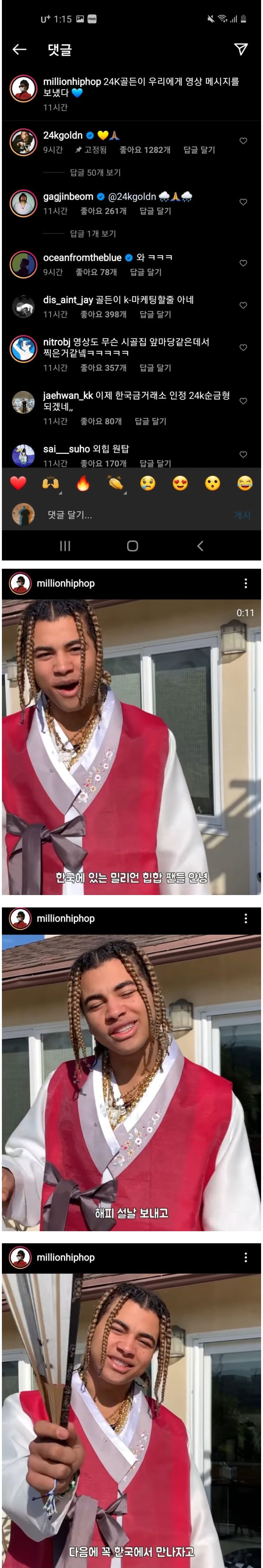 닉넴뭐없다한복도 이쁘고 미국 래퍼가 우리나라와 설날, 한복을 홍보해주네 래퍼도 새해 복 많이 받으세요.