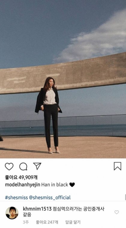 Ts@나킴미 그게 님이 사회생활이 부족해서 그런거예요. 실제로 공인중개사 여자분들보면 의외로 저 스타일이 엄청 많거든요 ㅋㅋ 거의 전국 공통으로