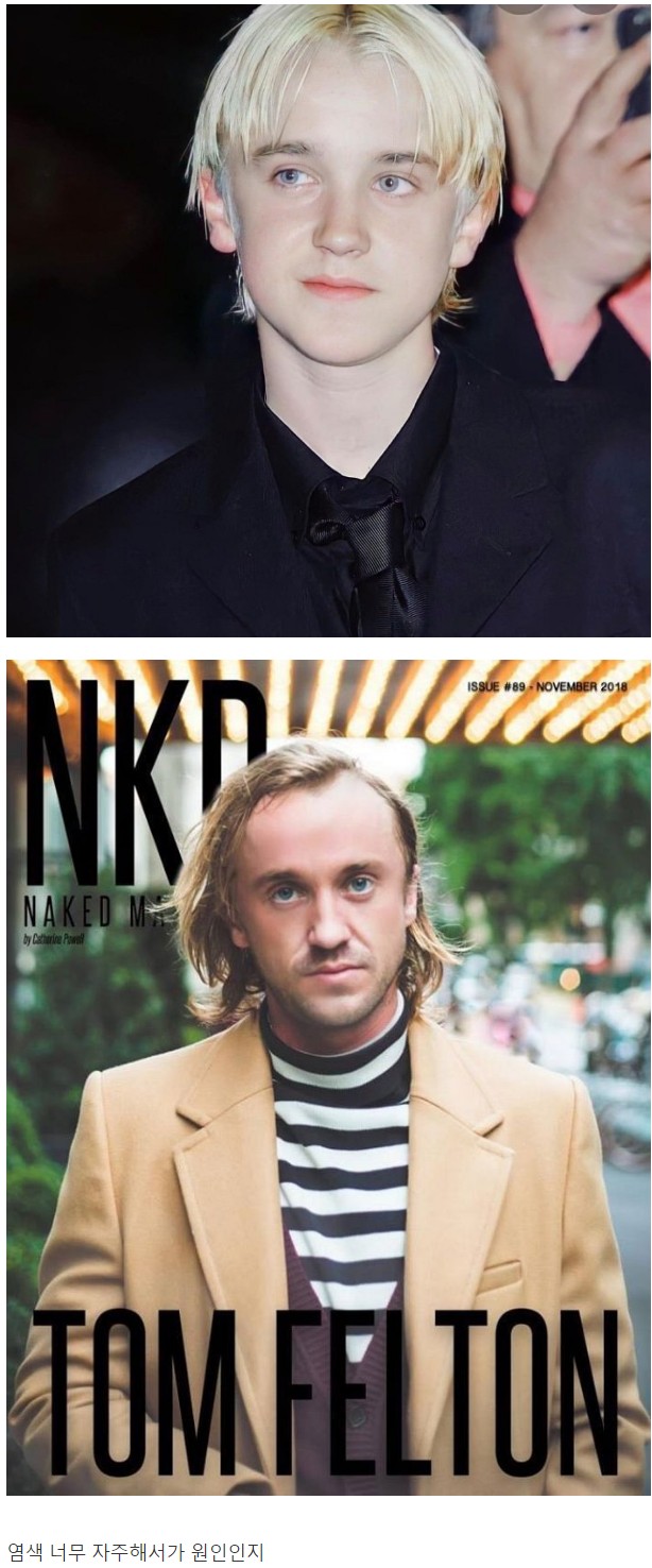 륨드탈색 많이한거도 영향 있을거같은데? 원래 말포이 금발아닌데 해리포터찍는다고 어렷을때부터 끝날때까지 탈색 겁나했다던데